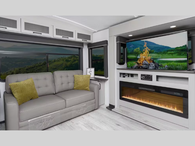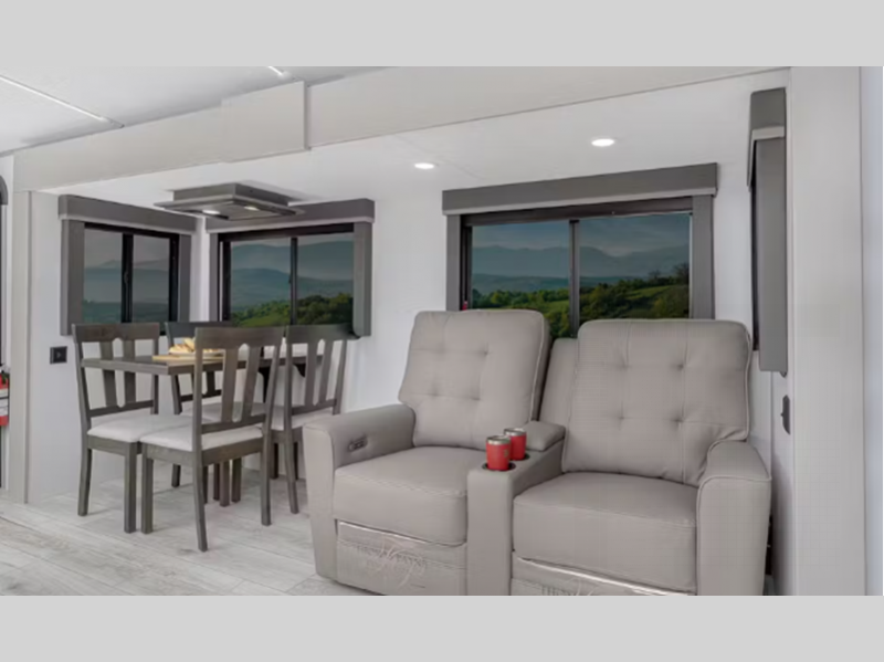 Each is built with a painted fiberglass front cap with LED strip lights and rock guard, fully walkable roof decking and a one-piece TPO membrane, and a HyperDeck high-performance water-resistant floor that is strong and light. The interior provides solid surface kitchen countertops, 78" arched interior ceilings, hardwood cabinetry, plus much more.