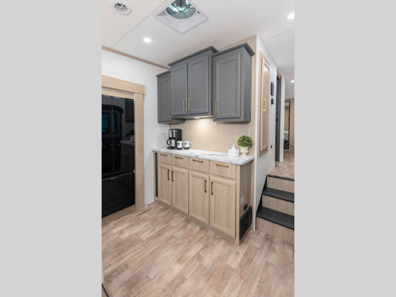 Sleeps 4 Slides 3 Length 35 ft 4 in Ext Width 8 ft Ext Height 12 ft 11 in Interior Color Mink Fresh Water Capacity 76 gals Grey Water Capacity 50 gals Black Water Capacity 50 gals Tire Size 16" Furnace BTU 35000 btu Available Beds King Refrigerator Type French Door 12V Refrigerator Size 12 cu ft Cooktop Burners 3 Shower Size 42" x 30" Number of Awnings 2 LP Tank Capacity 30 lbs Water Heater Type On Demand Tankless AC BTU 27000 btu TV Info LR 43" Smart LED TV Awning Info 16" and 11" Power w/LED Light Strip Axle Count 2 Washer/Dryer Available Yes Number of LP Tanks 2 Shower Type Standard Electrical Service 50 amp Similar Floorplans