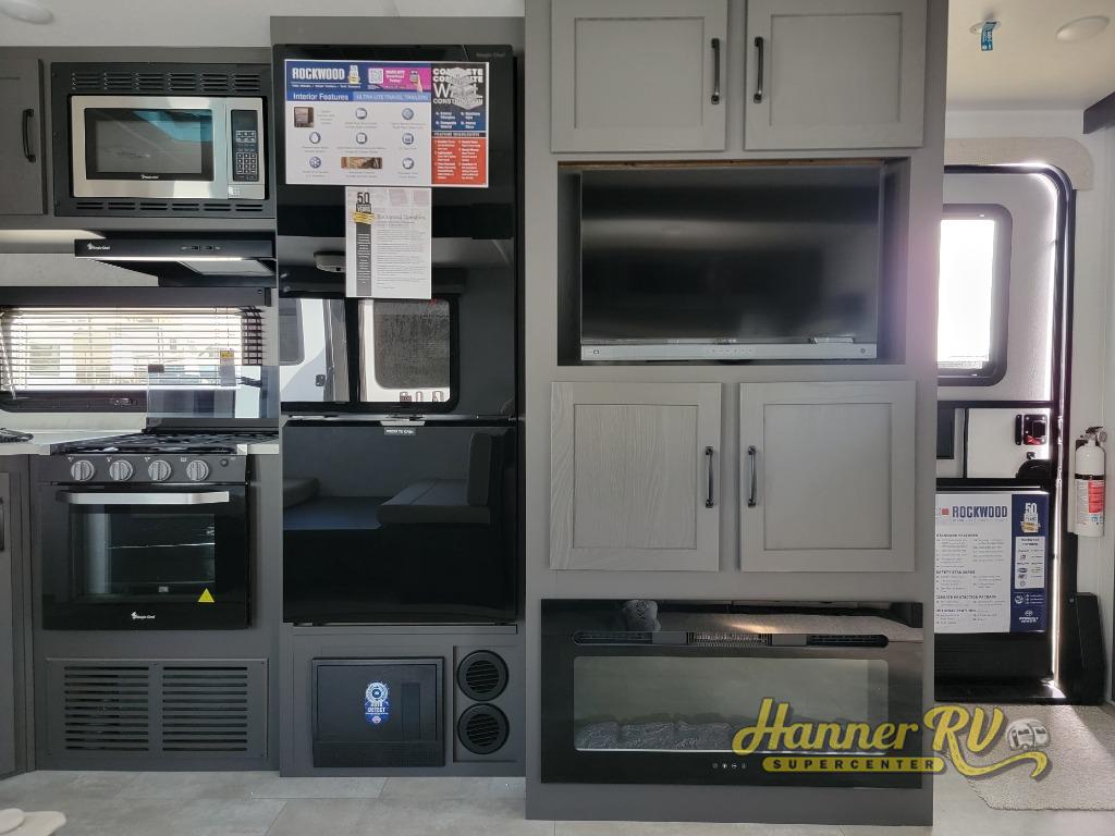 Each Rockwood Ultra Lite travel trailer by Forest River includes superior construction with a high gloss front cap, laminated white fiberglass sidewalls, and tinted frameless windows for a sleek look. The torsion axle, Rubber-Ryde suspension will make towing smooth and hassle-free, along with the nitrogen filled, Goodyear Endurance tires and the tire pressure monitor system. Interior comforts include designer kitchen backsplash, solid wood cabinet doors with hidden hinges, and night roller shades to name a few. Choose a Rockwood Ultra Lite travel trailer today!
