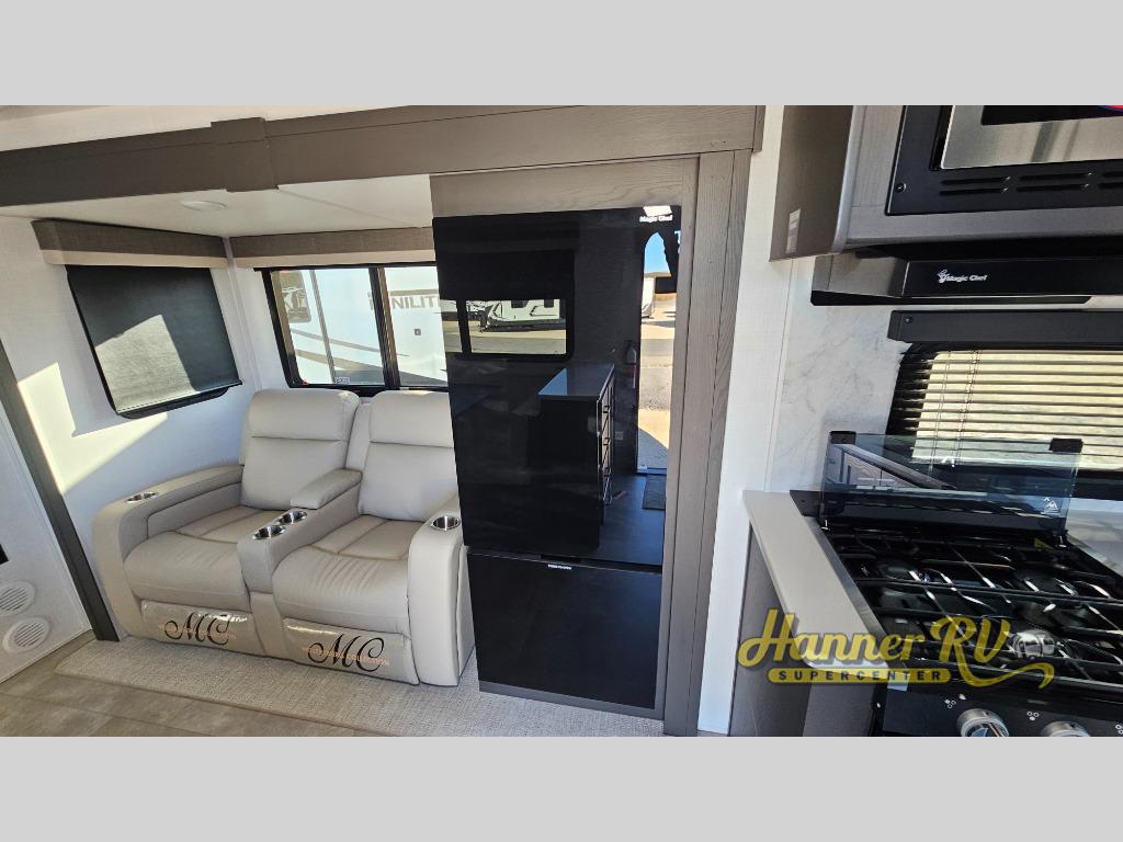 Wherever you decide to camp, you can be sure to enjoy your time in this double slide out trailer! The chef of your group will love having a front kitchen with generous counter space plus an exterior griddle when the weather is nice. There is also a 21' awning outdoors, along with Solid Entry Steps, and dual entry doors! A 39" booth dinette provides a place to dine or play a card game after dinner, and the theater seat across from the 40" TV is perfect for movie night. The walk-thru bath leads to the rear master bedroom where you'll find a queen bed, a large wardrobe, and a TV option if you enjoy shows in bed!