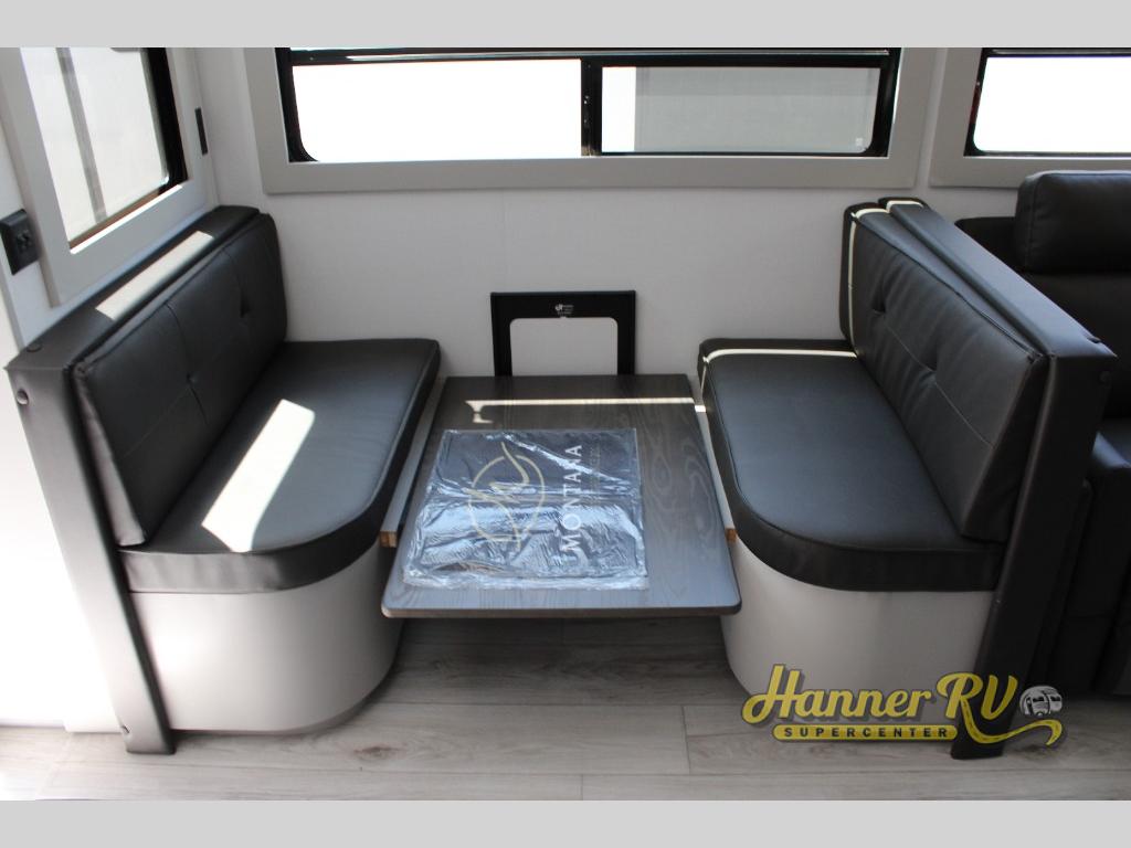 Live the high life with a Keystone Montana High Country fifth wheel! You'll have all the luxury you need with these units. They come with a Road Armor™ shock absorbing hitch pin, a MaxTurn™ front cap with KeyShield™ automotive-grade paint, a fully walkable roof with Alpha seamless TPO membrane system, and an insulated underbelly with forced hot air and electric tank heaters. The Road Armor™ suspension has 360° vibration control for a smooth ride, and the Ground Control® four-point electric auto-leveling with hitch memory will make set-up quite easy. The interior is elegantly appointed with the Thomas Payne Collection furniture, hardwood decorative slide-out fascia, Beauflor® vinyl throughout with Syntec® woven flooring in main slide outs, accent crown molding, and Sandstone Maple cabinetry.
