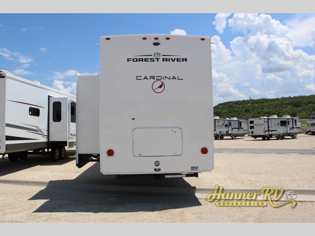 With any Cardinal fifth wheel by Forest River you will enjoy affordable luxury at every turn. These models are constructed with residential fiberglass insulation in the roof and floor, a sectioned ABS plastic underbelly armor, and a vacuum bonded, welded aluminum structure for added strength and durability. You will also find seamless roto-cast holding tanks, an outdoor shower, and 4-point auto leveling for quick and easy setup. There are carpet-free living spaces, residential backsplash, motion lighting throughout, and many more comforts!