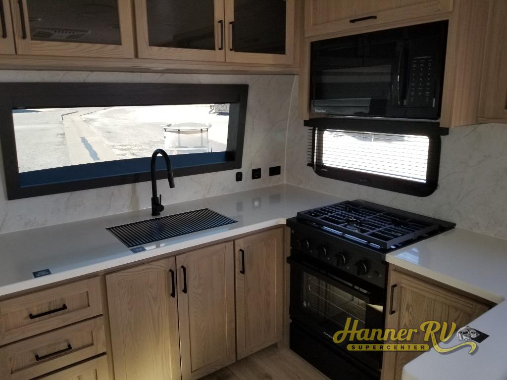 Front Kitchen, King Bed Slide Out, Theater Seats, Dual Sinks, & Walkable Roof!