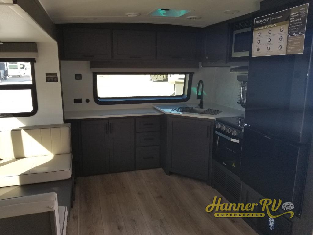 Each Rockwood Ultra Lite travel trailer by Forest River includes superior construction with a high gloss fiberglass cap, aluminum cage construction, and a power awning with LED lighting for a cozy and functional outdoor space. The torsion axle, power tongue jack will make towing smooth and hassle-free, along with the nitrogen filled, Goodyear Endurance tires and the tire pressure monitor system. Interior comforts include kitchen sink with high rise faucet, hidden hinge cabinet doors, and roller shades to name a few. Choose a Rockwood Ultra Lite travel trailer today!