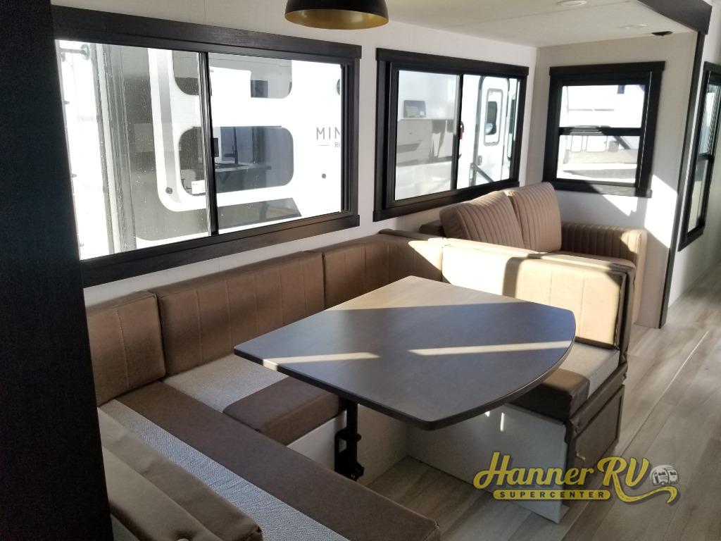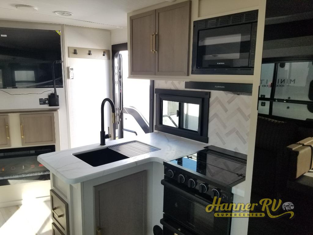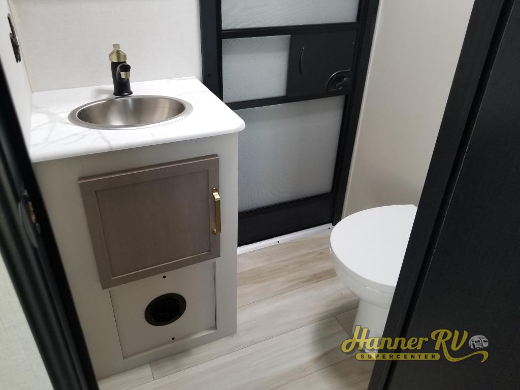 With any Wildwood Heritage Glen travel trailer by Forest River, the quality construction, attention to detail and design along with a bright and welcoming interior allows you to relax in comfort. Each model includes a WeatherShield one piece fiberglass roof, nitrogen-filled radial tires, and an enclosed underbelly with 12V tank heaters on all holding tanks for added protection. You will appreciate the on-demand tankless water heater, along with power stabilizer and tongue jacks, and an extra-large pass-thru storage with slam latch baggage doors. Head inside to enjoy matte gold hardware, wood door casings in place of plastic door casings, and an ultimate interior lighting upgrade with 4k puck/strip lights and a stylish LED back-lit bath mirror!