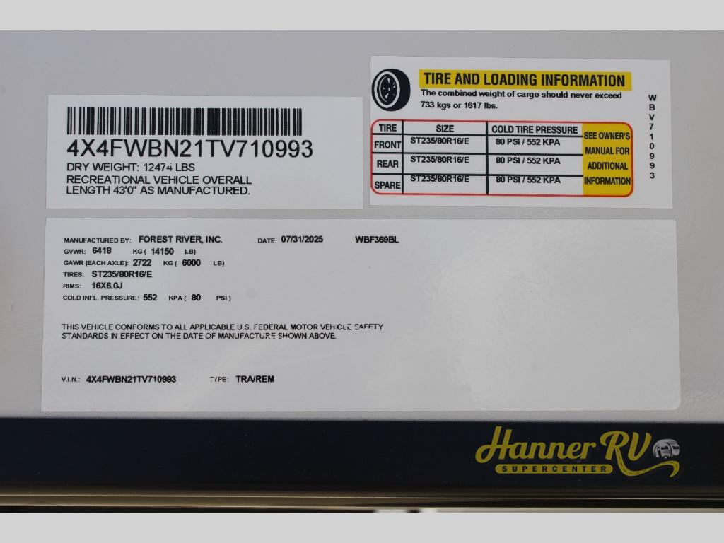 All prices on the Hanner RV Supercenter website are subject to change without notice. Hanner RV will not be held responsible for any misprints, typos, or errors in pricing found within any of our website pages. Any price listed excludes sales tax, registration tags, and delivery fees. Manufacturer pictures, specifications, and features may be used in place of actual units on our lot. All calculated payments are an estimate only and do not constitute a commitment that financing or a specific interest rate or term is available. Units are subject to prior sale until a buyer’s order is submitted and a deposit is made. Please verify unit availability by calling 325-854-1000, as inventory status changes rapidly.