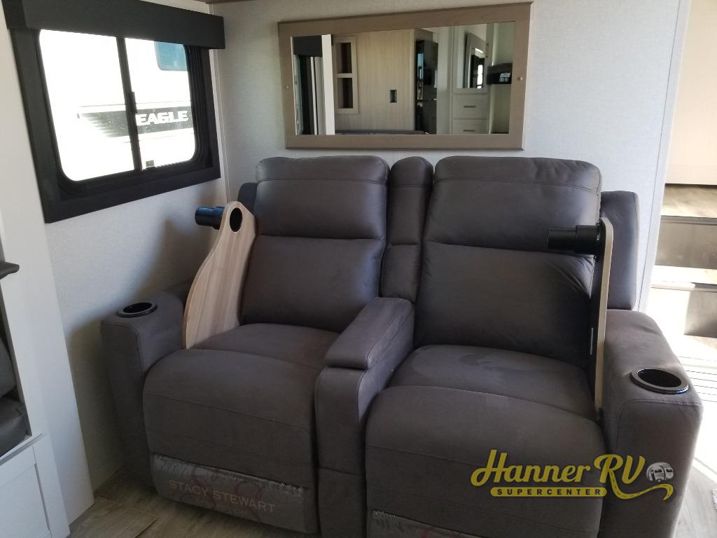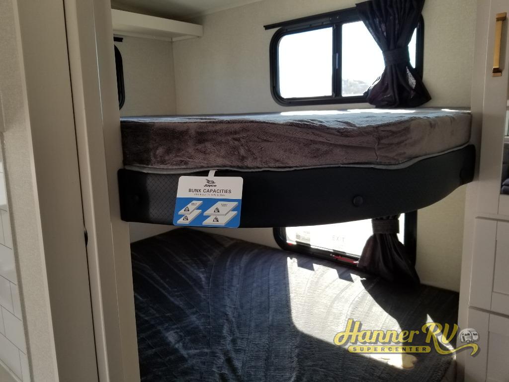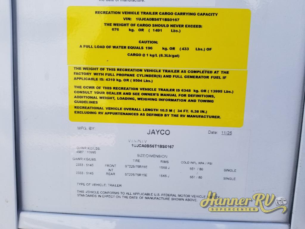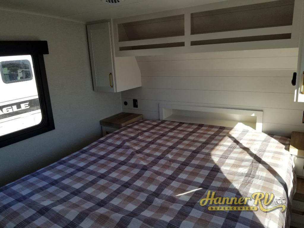 With any Eagle HT fifth wheel or travel trailer by Jayco you will enjoy a smooth drive thanks to the 4 Star Handling Package and MORryde CRE-3000 rubberized suspension. The Customer Value Package includes amenities that are sure to make camping easier than ever, like the 60K on-demand water heater, Keyed-Alike lock system, 15,000 BTU "Whisper Quiet" A/C, and more. Handcrafted door/drawer fronts will make your space feel more like home, along with residential vinyl flooring throughout, GE appliances, and blackout roller shades with reflective side throughout to keep the sun out when you want to sleep in. Each model also includes a NuVo H2O water treatment system with filters included, interior and exterior "Blue Sync" audio connect with MB Quart Sound for your TV and phone, and 100% no floor vents for added comfort and convenience!