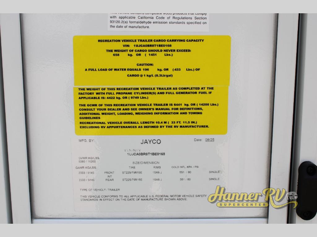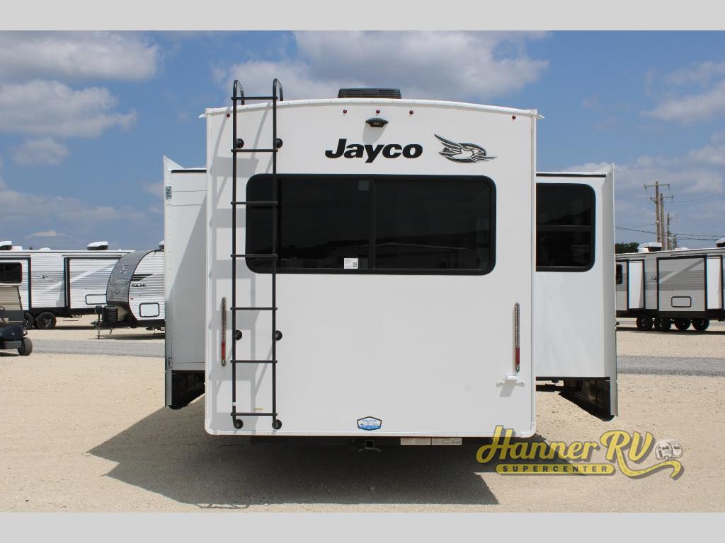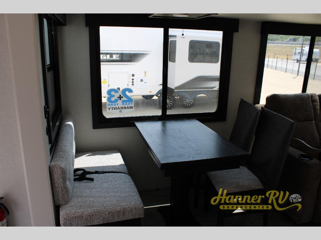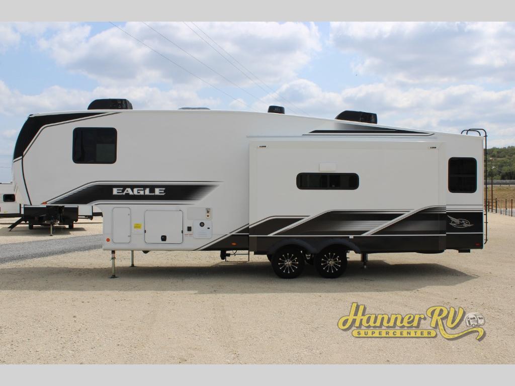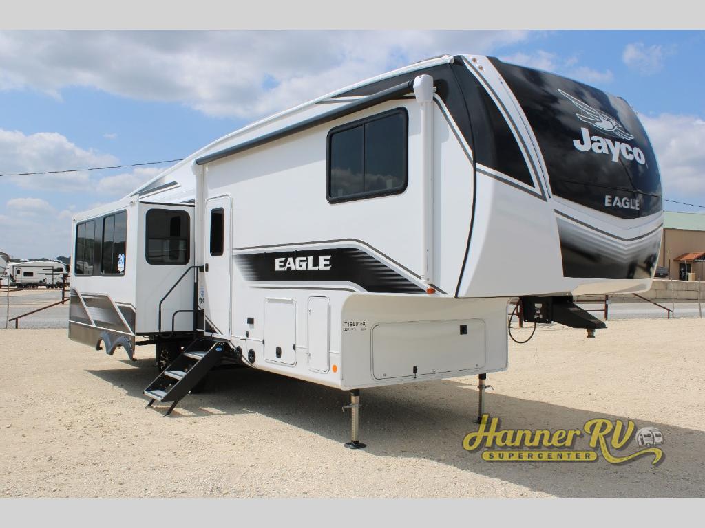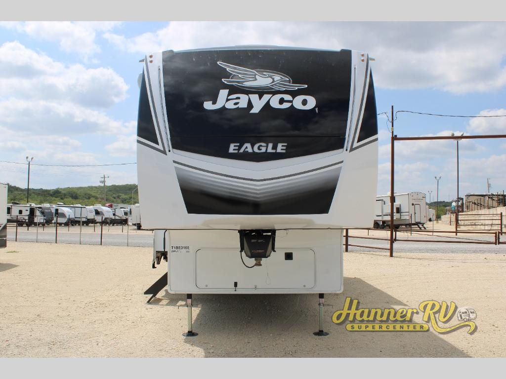 With any Eagle HT fifth wheel or travel trailer by Jayco you will enjoy a smooth drive thanks to the 4 Star Handling Package and MORryde CRE-3000 rubberized suspension. The Customer Value Package includes amenities that are sure to make camping easier than ever, like the 60K on-demand water heater, Keyed-Alike lock system, 15,000 BTU "Whisper Quiet" A/C, and more. Handcrafted door/drawer fronts will make your space feel more like home, along with residential vinyl flooring throughout, GE appliances, and blackout roller shades with reflective side throughout to keep the sun out when you want to sleep in. Each model also includes a NuVo H2O water treatment system with filters included, interior and exterior "Blue Sync" audio connect with MB Quart Sound for your TV and phone, and 100% no floor vents for added comfort and convenience!