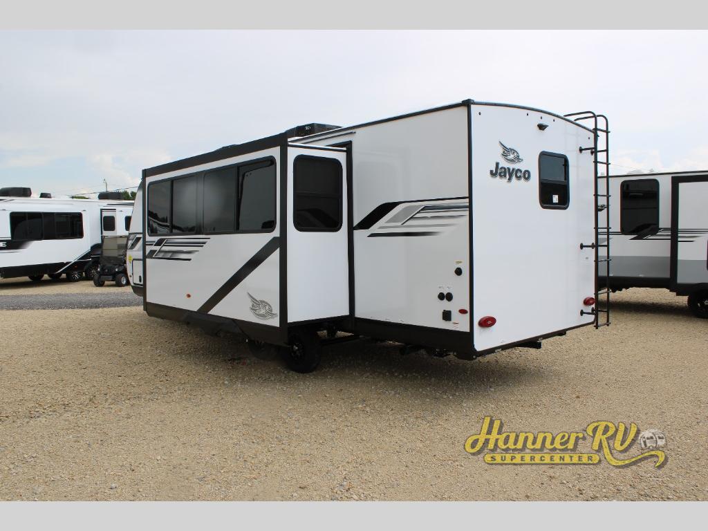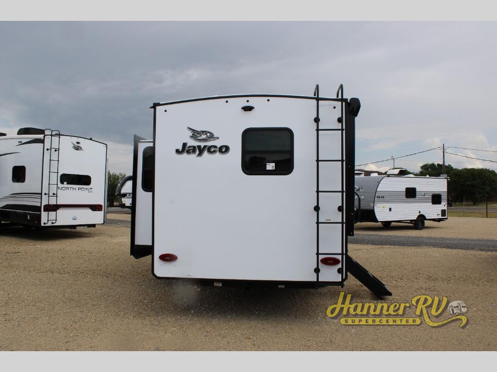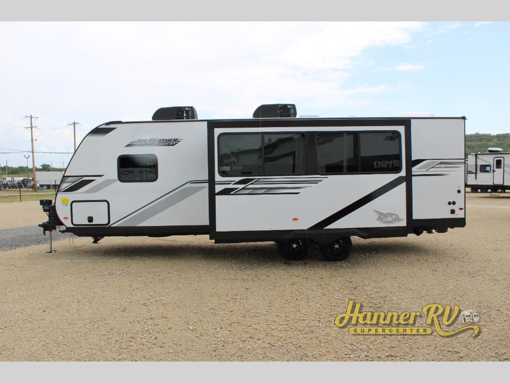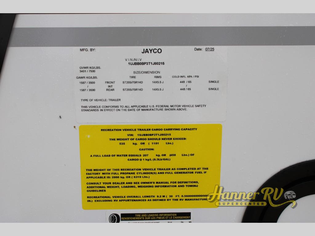 With any Jay Feather travel trailer by Jayco, you will enjoy lightweight towing, convenient exterior amenities, and at-home comforts inside! The Overlander 1 Solar Package included within the Jay Sport Package comes with a 200W solar panel and a 30-amp digital controller so you can enjoy some off-grid camping. There is also a modern graphics package with a dual-colored sidewall, LCI Solid Step fold-down aluminum tread steps on the main entry door, and Climate Shield 0 -100° F tested weather insulation package that will allow you to camp in all sorts of climates. The Customer Value Package will make time outdoors easier than ever with a power tongue jack and a Rock Solid stabilizer system, plus American-made nitro-filled Goodyear tires with self-adjusting electric brakes. More exterior features include a Keyed-Alike locking system, marine grade exterior speakers, a Magnum Truss roof system, and the list goes on! And we haven't even touched on the interior comforts, like the residential style seamless countertops and vinyl flooring throughout, decorative backsplash, handcrafted hardwood door/drawer fronts, and multiple USB charging ports to keep you going!