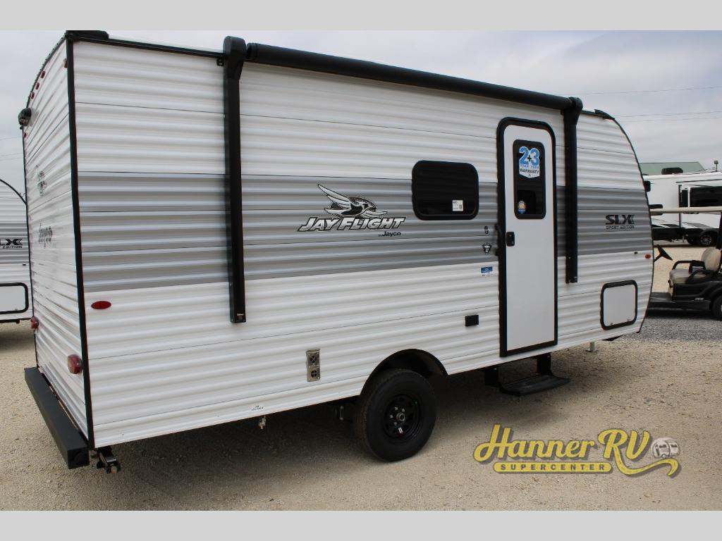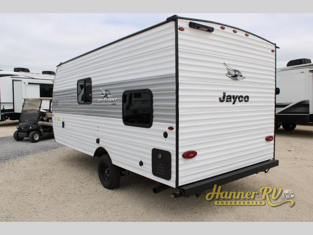 The Jayco Jay Flight SLX travel trailer is quite easy to own because it is lightweight for an easier towing experience. Built on a fully integrated A-frame with galvanized-steel, impact-resistant wheel wells, the Jay Flight SLX has quality at its very foundation. That quality continues on to the electric self-adjusting brakes, easy-lube hubs, Magnum Truss roof system, and LP quick connect. Some of what the mandatory Customer Value Package includes is backup camera prep, Keyed-Alike entry and baggage doors, marine grade exterior speakers, and an on-demand tankless water heater.