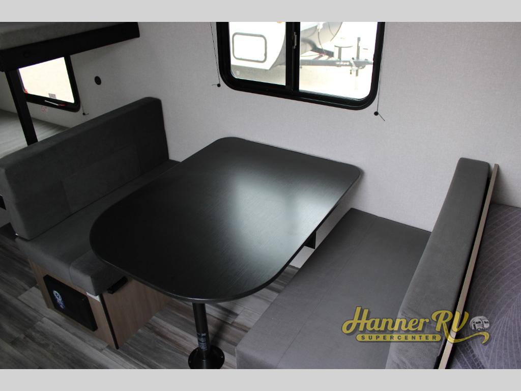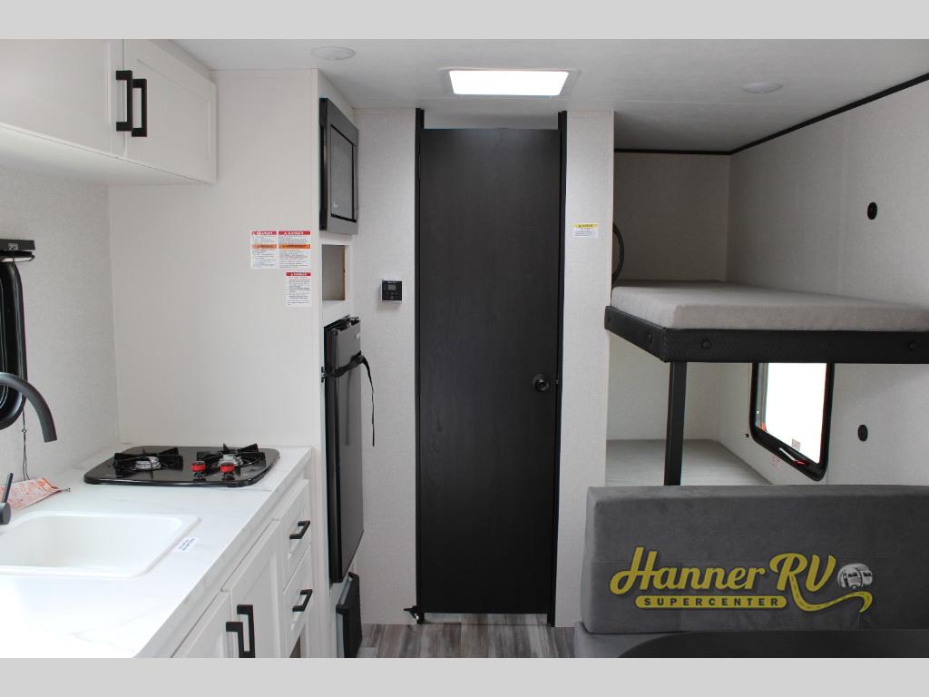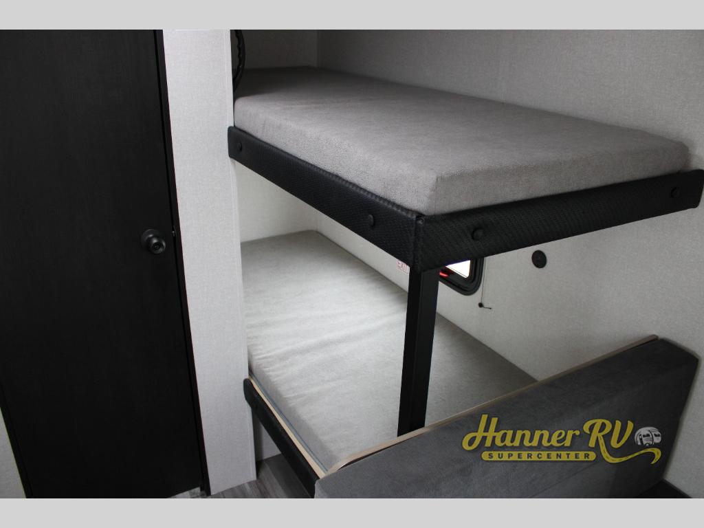 Your crew of five will love camping in this single-axle travel trailer! There are bunk beds in the rear corner and a full bath in the other rear corner for easy nighttime use. You will have the front queen bed to yourselves, along with an overhead shelf and a nightstand/wardrobe for your clothes. The booth dinette provides a place to dine, play games, and even let an extra guest stay over. The Customer Value Package on this Sport Edition model includes a 19K BTU furnace, stabilizer jacks, a power awning, an entry door with a window and shade prep, and many more stand-out features!