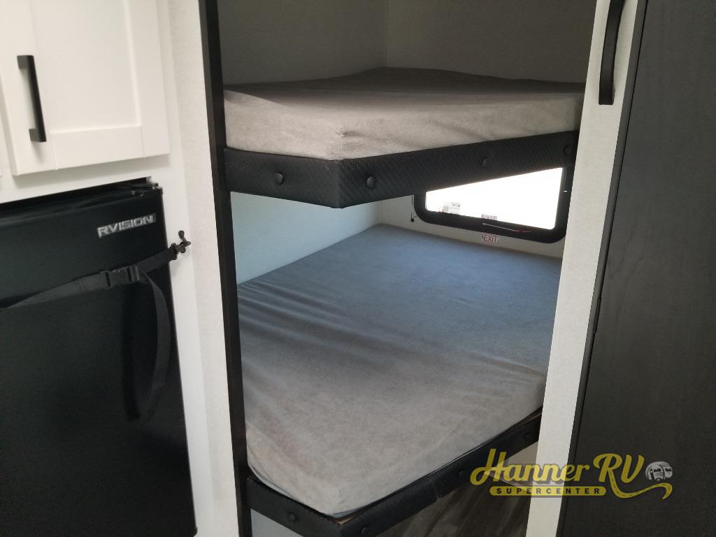 Your crew of eight will love camping in this travel trailer! There are double-size bunk beds in the rear corner and a private bath in the other rear corner for easy nighttime use. You will have the front queen bed to yourselves, along with an overhead shelf and a nightstand for your things. And the U-shaped dinette provides a place to dine, play games, and even let more guests sleep over. The Customer Value Package on this Sport Edition model includes a 19K BTU furnace, stabilizer jacks, a power awning, an entry door with a window and shade prep, and many more stand-out features!