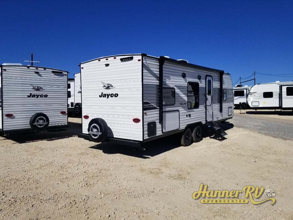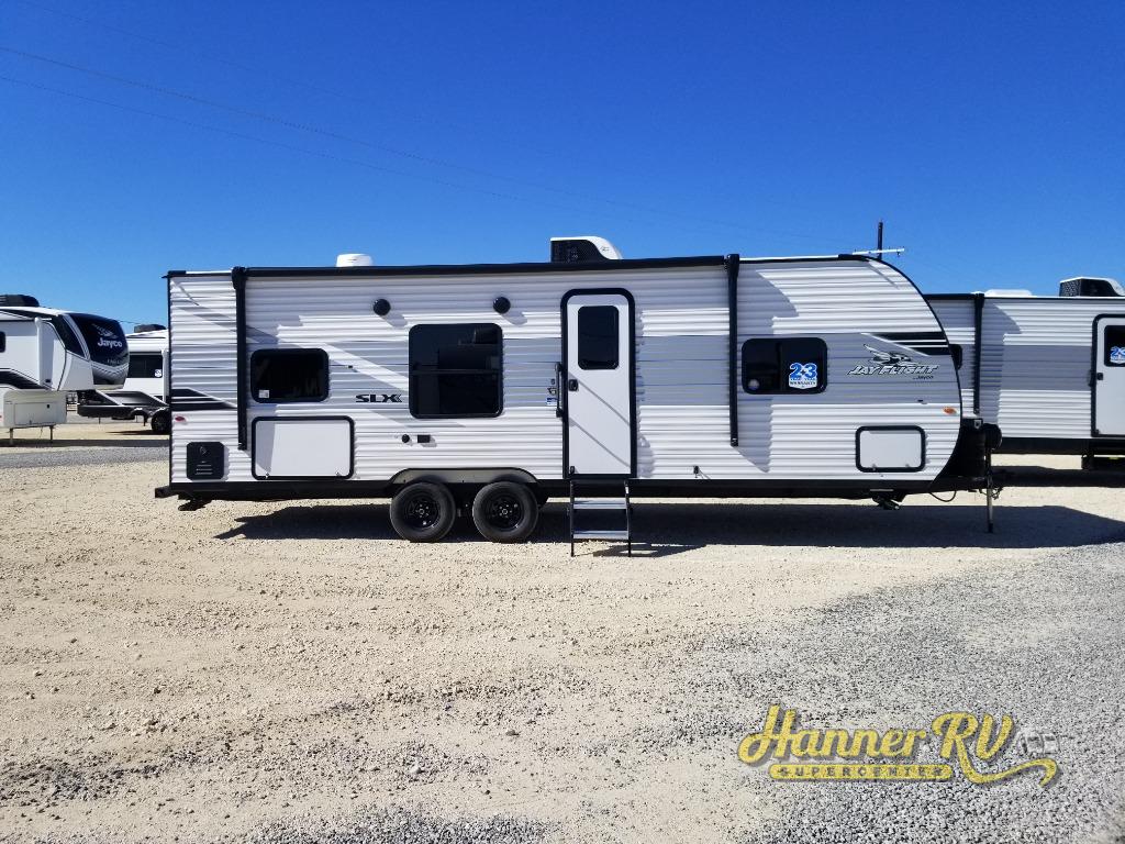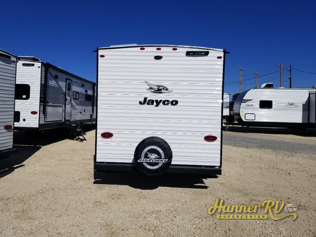 The Jayco Jay Flight SLX travel trailer is quite easy to own because it is lightweight for an easier towing experience. Built on a fully integrated A-frame with galvanized-steel, impact-resistant wheel wells, the Jay Flight SLX has quality at its very foundation. That quality continues on to the electric self-adjusting brakes, easy-lube hubs, Magnum Truss roof system, and LP quick connect. Some of what the mandatory Customer Value Package includes is backup camera prep, Keyed-Alike entry and baggage doors, and an on-demand tankless water heater.