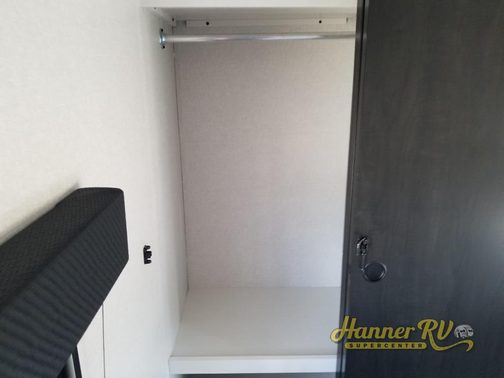 If space is what you're looking for in your next trailer, space is what you'll get this this Jay Flight SLX! The large slide houses the jack-knife sofa and booth dinette, and the added space here will provide everyone room to move about. The chef of your group will love cooking inside, or they can head outside to cook on the outdoor kitchen. Double-size bunks are sure to be a big hit with the little ones, and you'll love having your own space up front in the private bedroom. This unit includes ample storage space, including a hidden pantry with shelves, a bedroom closet plus dual bedside wardrobes, plus exterior storage for hiking or fishing gear!