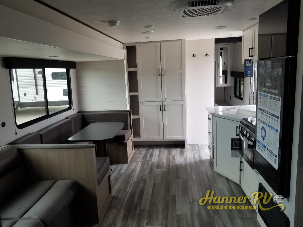 The Jayco Jay Flight SLX travel trailer is quite easy to own because it is lightweight for an easier towing experience. Built on a fully integrated A-frame with galvanized-steel, impact-resistant wheel wells, the Jay Flight SLX has quality at its very foundation. That quality continues on to the electric self-adjusting brakes, easy-lube hubs, Magnum Truss roof system, and LP quick connect. Some of what the mandatory Customer Value Package includes is backup camera prep, Keyed-Alike entry and baggage doors, and an on-demand tankless water heater.