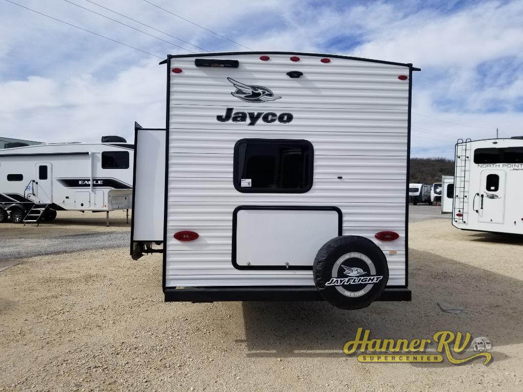 The Jayco Jay Flight SLX travel trailer is quite easy to own because it is lightweight for an easier towing experience. Built on a fully integrated A-frame with galvanized-steel, impact-resistant wheel wells, the Jay Flight SLX has quality at its very foundation. That quality continues on to the electric self-adjusting brakes, easy-lube hubs, Magnum Truss roof system, and LP quick connect. Some of what the mandatory Customer Value Package includes is backup camera prep, Keyed-Alike entry and baggage doors, and an on-demand tankless water heater.