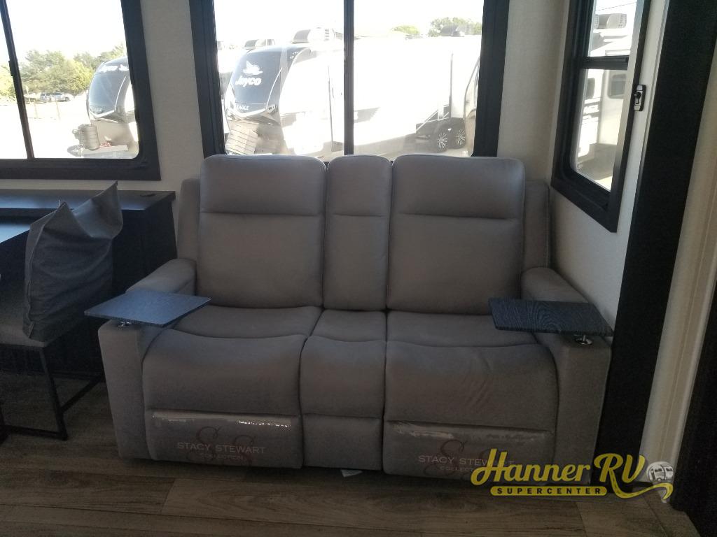 Climate Shield, Tri-Fold Sofa, Loft, King Bed, & Theater Seating!Jayco Seismic fifth wheel toy hauler 395 highlights: