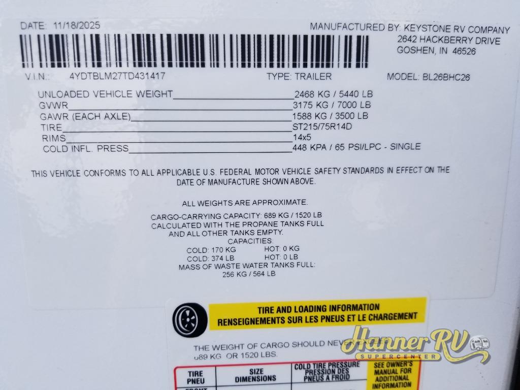 New 2026 Keystone RV Bullet Classic 26BHC