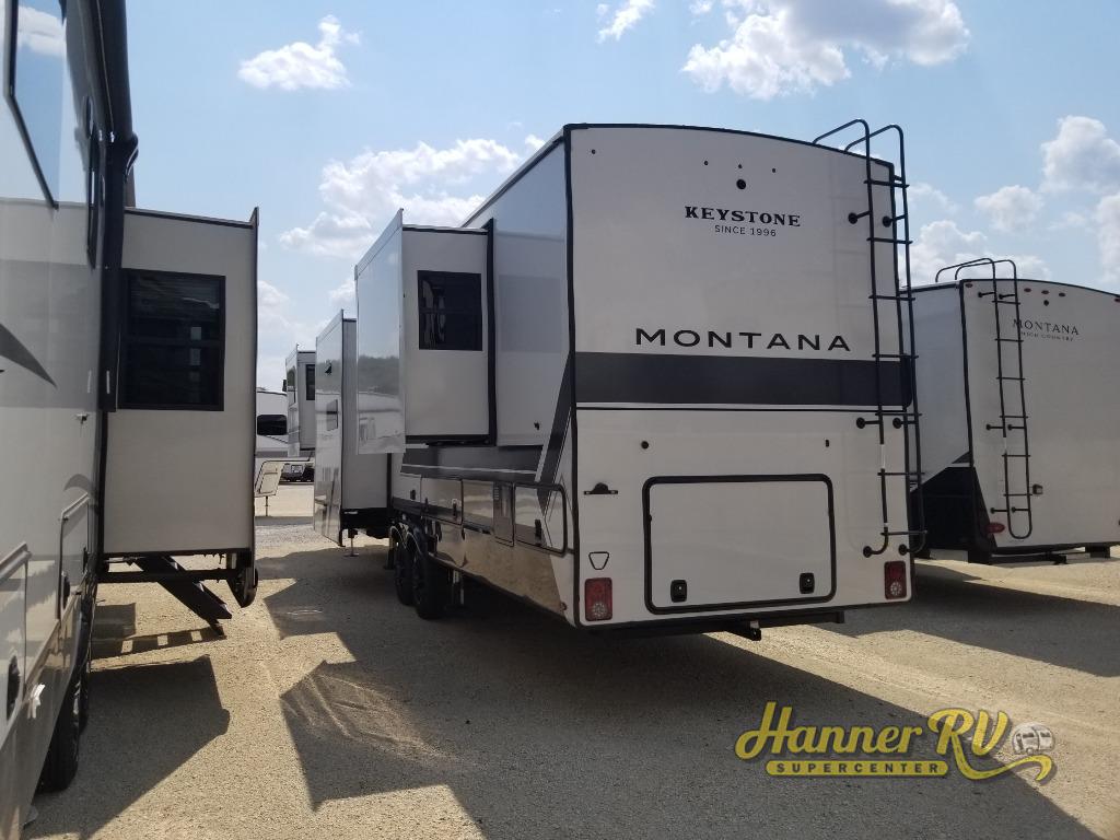 Enjoy luxury, innovation, and the outdoors in any one of Montana's finest fifth wheels. Each set the standard with exceptional features, and exciting factory installed options to provide you a great home on the road. Keystone's 12" I-beam chassis with z-frame technology provides a strong and durable foundation to your fifth wheel, and the four season living package will help extend your camping season. A few other construction features you will appreciate include a MORryde CRE3000 suspension, a fully walkable roof with an alpha seamless TPO membrane system, and 4k square frameless tinted safety glass windows. Each feature stylish interiors with two decor choices paired with beautiful hardwood cabinetry, Beauflor vinyl flooring throughout, central vacuum, plus a La-Z-Boy furniture package for all-around comfort!