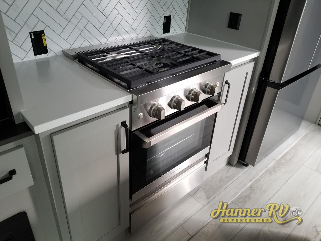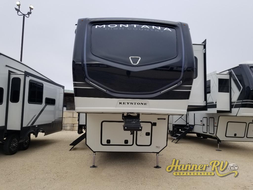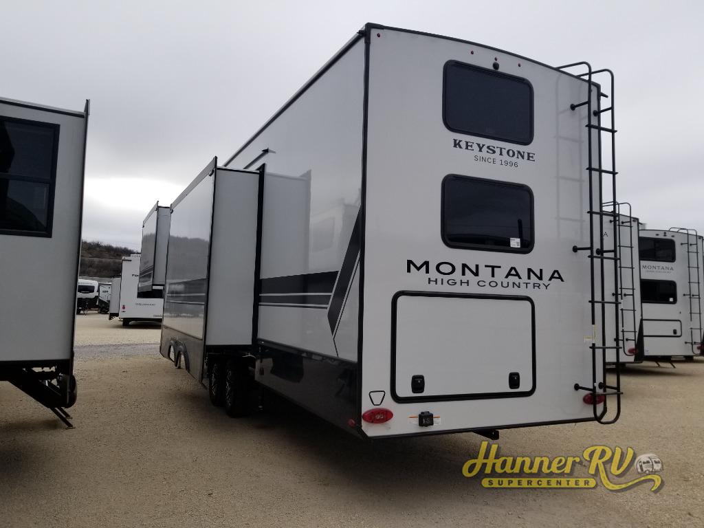 Live the high life with a Keystone Montana High Country fifth wheel! You'll have all the luxury you need with these units. They come with a MaxTurn™ front cap with KeyShield™ automotive-grade paint, a fully walkable roof with Alpha seamless TPO membrane system, and an insulated underbelly with forced hot air and electric tank heaters. The MORryde CRE3000 suspension with wet bolts helps provide a smooth tow, and the Ground Control® four-point electric auto-leveling with hitch memory will make set-up quite easy. The interior is elegantly appointed with the Thomas Payne Collection furniture, hardwood decorative slide-out fascia, Beauflor® vinyl throughout, accent crown molding, and premium solid surface kitchen countertops.