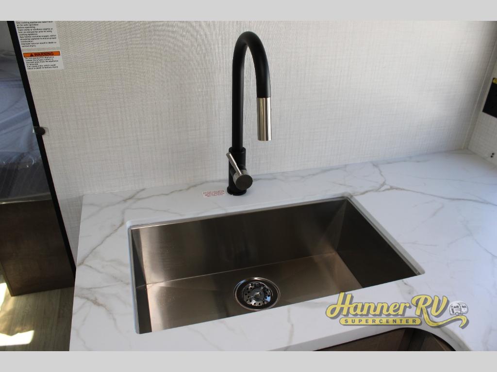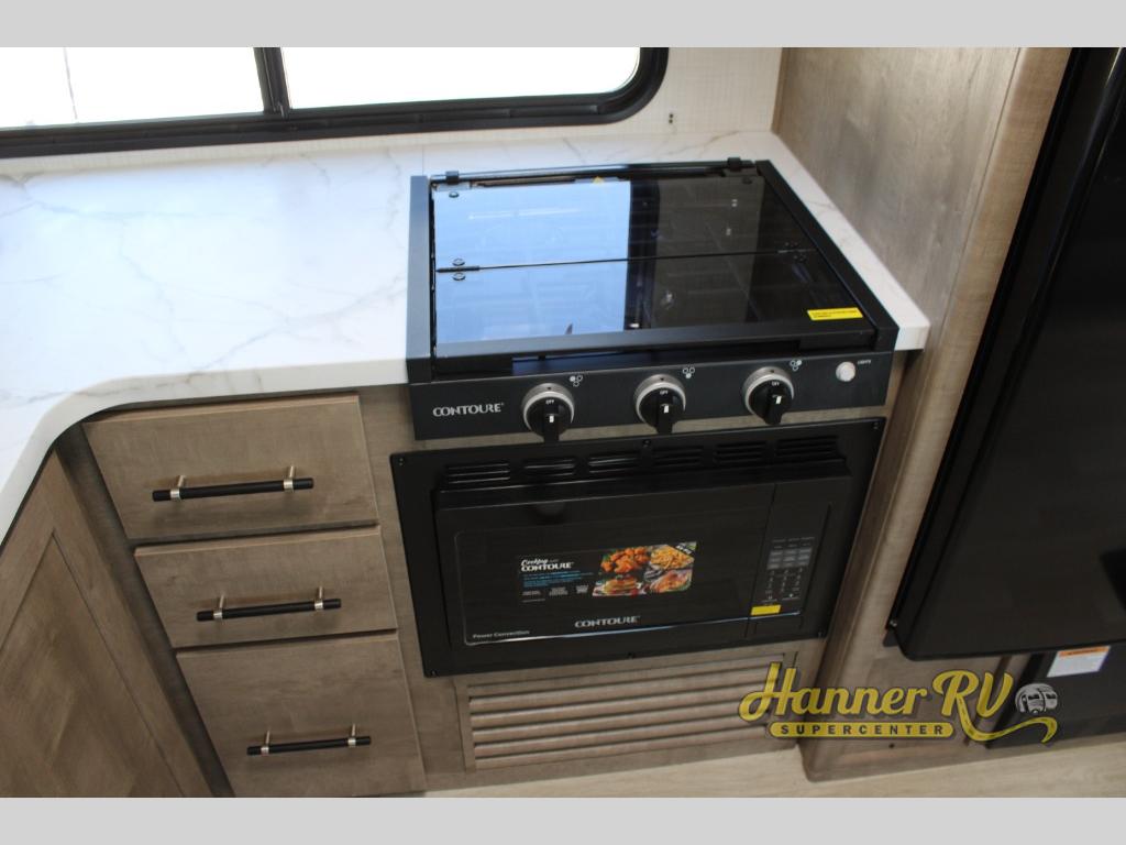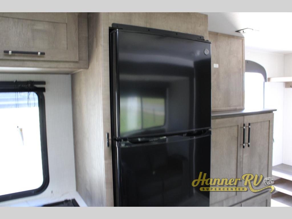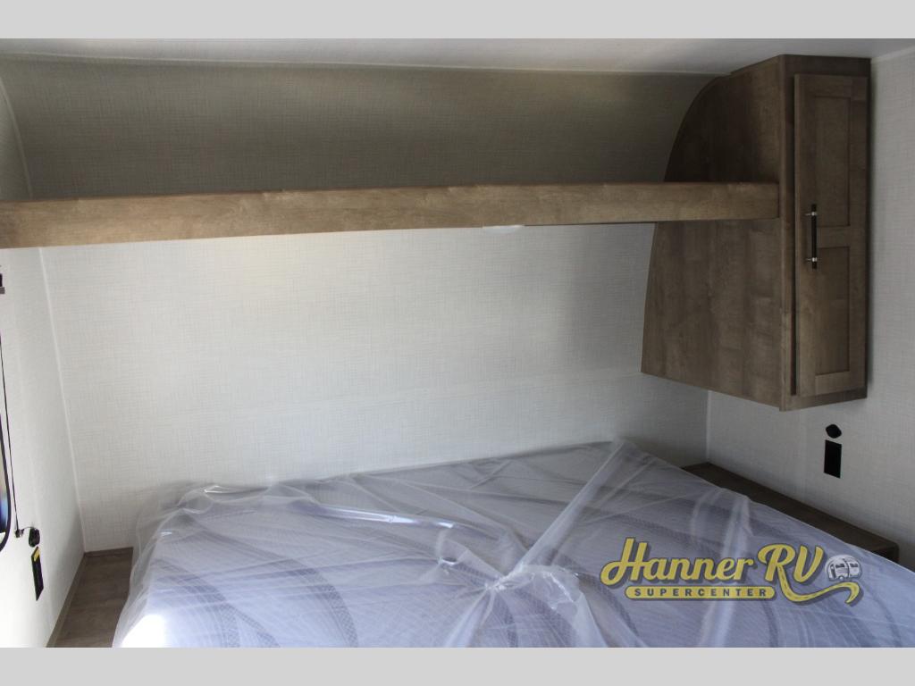 You'll feel right at home wherever you decide to camp in this travel trailer. The large slide out in the combined kitchen and living area gives your crew plenty of space to move about, plus there is a booth dinette and sofa for comfy seating and sleeping spaces. A full kitchen, compete with three burner cooktop and 10 cu. ft. 12V refrigerator will let you cook and store food for the whole week. Head to the full rear bath that includes a spacious vanity, a shower, toilet, and linen closet for clean towels. And when you're ready to catch some zzz's, the queen bed in the front private bedroom is sure to bring comfort!