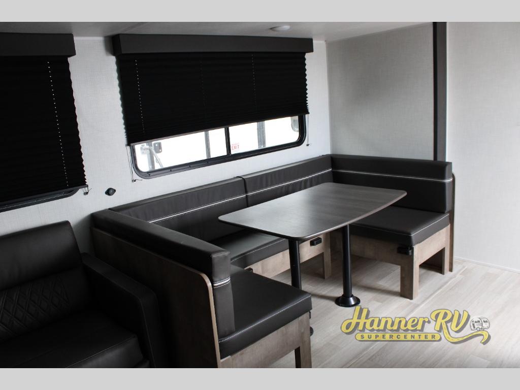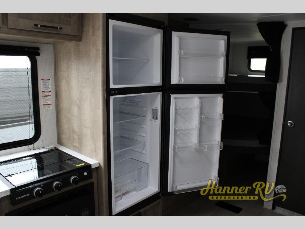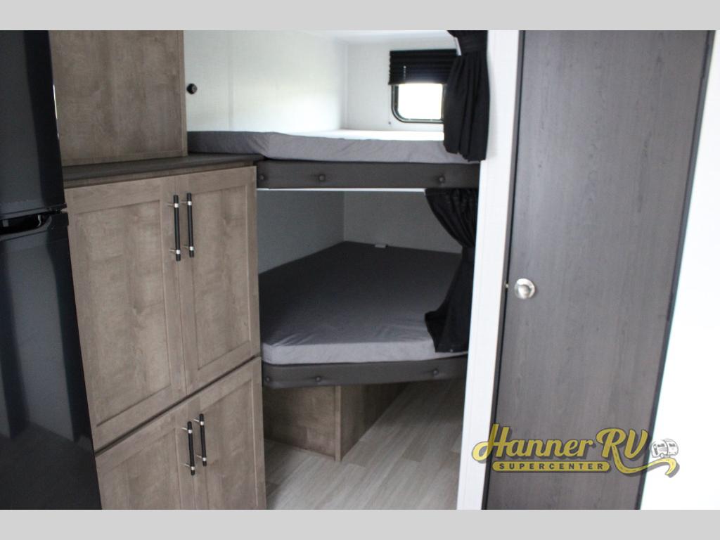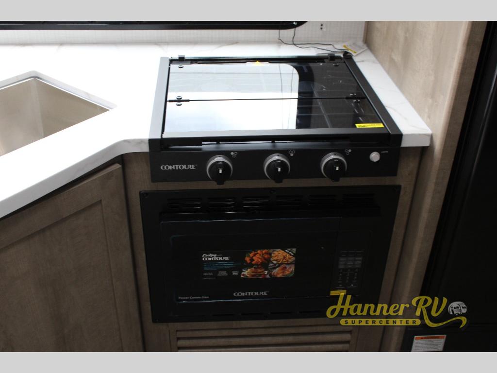 What could be better than camping with double-size bunks for guests? How about a front private bedroom for you, a full bath to clean up in, and a large slide out for maximum space! The chef of your group can prepare breakfast on the three burner gas range in the morning, or use the microwave if you're on the go. There is a U-shaped dinette to dine at, or you can take your plate outdoors to sit under the power awning.