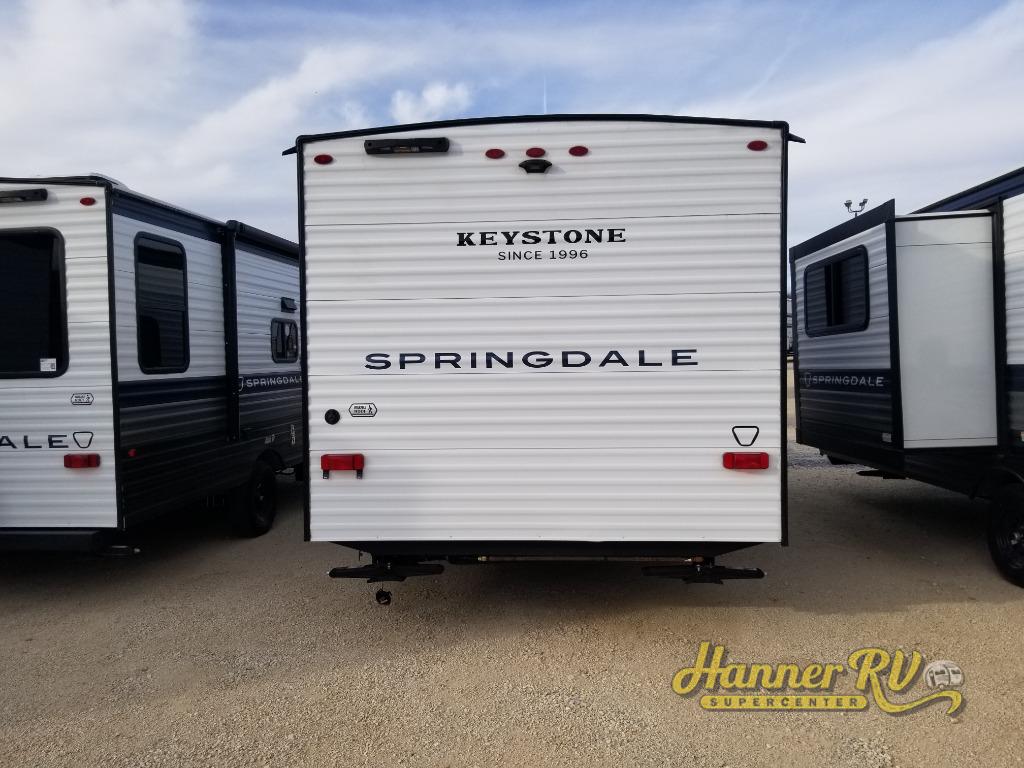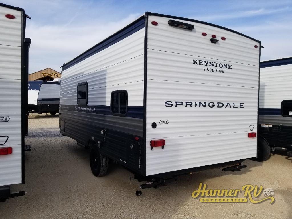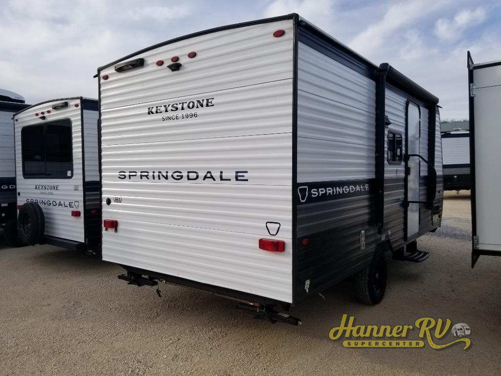 With any Springdale Mini travel trailer by Keystone, you will enjoy lightweight towing thanks to their single axle! The XL tinted safety glass windows are ultra durable, and the power awning will provide protection from the sun as you relax in your camp chairs outside. Each model includes blackout night shades, LED lighting, plus many more interior comforts. There is also a 20K BTU furnace to keep you comfortable, plus a tankless water heater for endless hot showers!