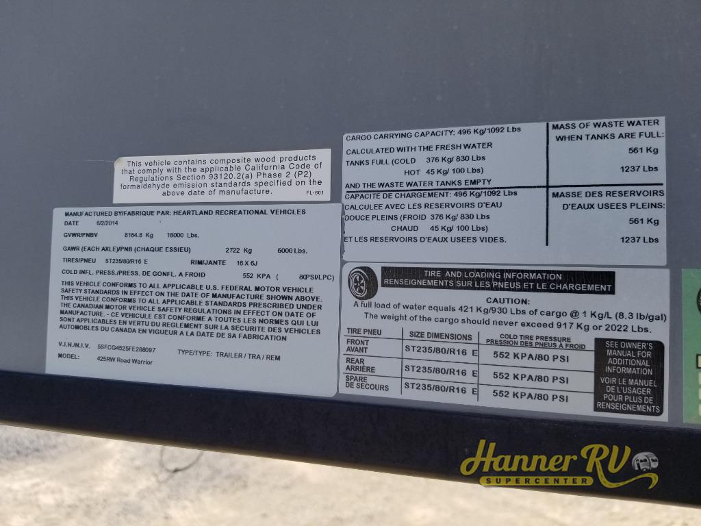 Used 2015 Heartland Road Warrior 425