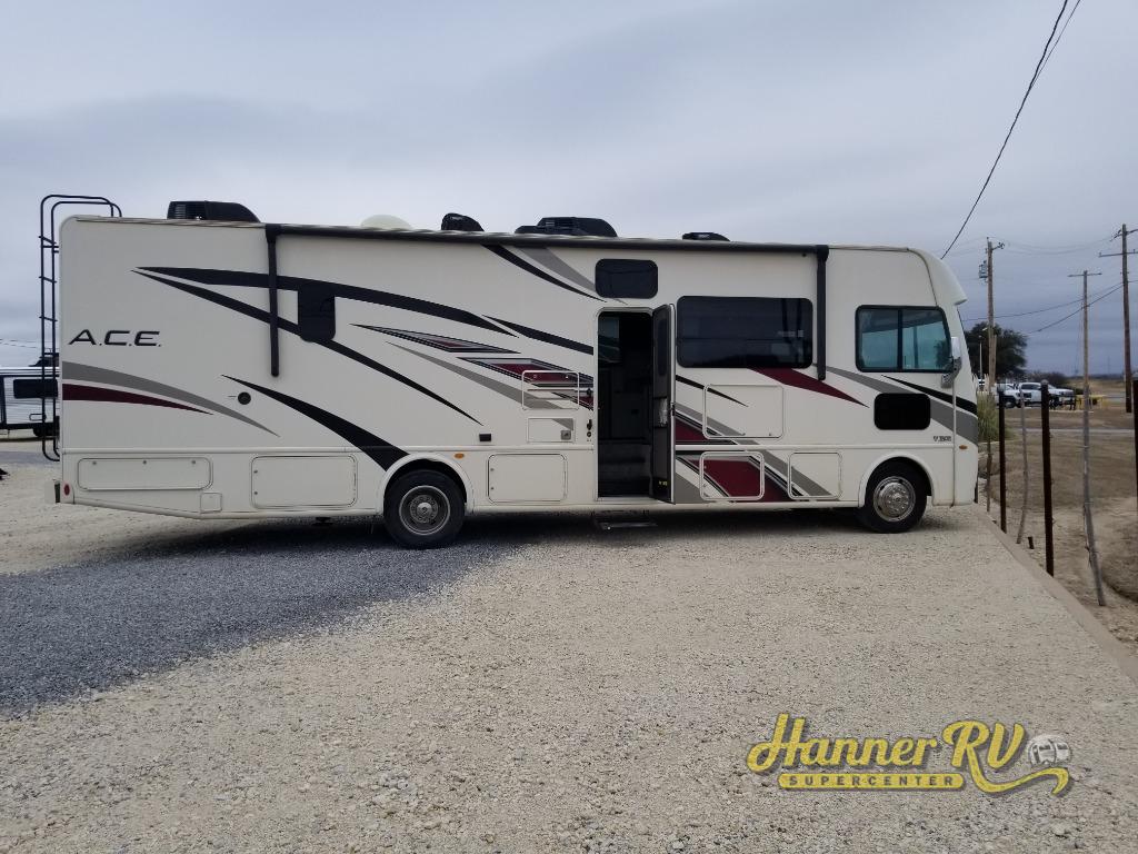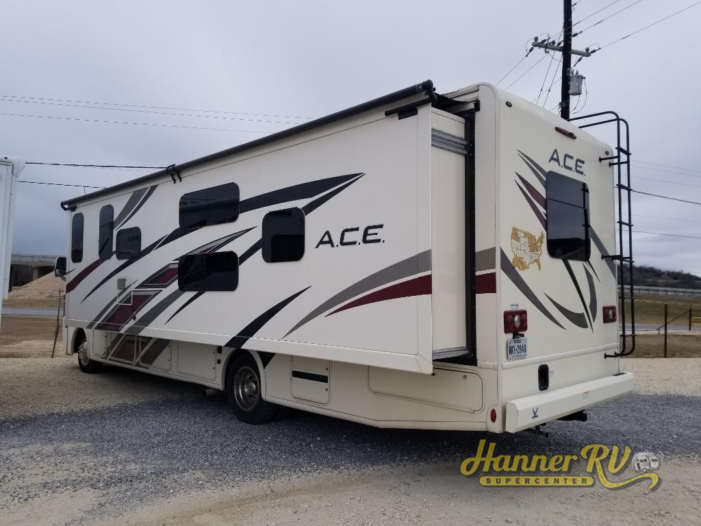 Make every journey a memorable one with this A.C.E. Class A gas motorhome! Get together with your favorite people and explore all that nature has to offer while still enjoying all that technology has to offer with the five TVs, USB charging ports, and ceiling-ducted A/C system that has been included on this model. You will also appreciate having plenty of space and accommodations to sleep nine people because of the full-wall slide that has been added. And don't forget to bring along your toiletries and groceries because this unit also gives you a full bathroom and kitchen!