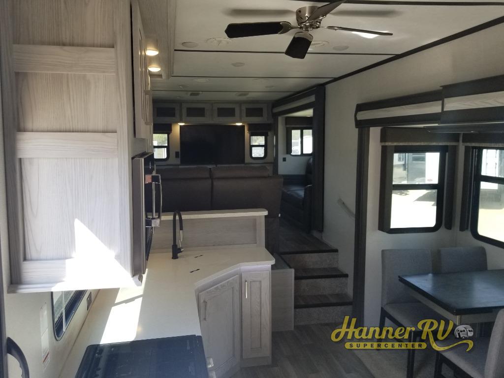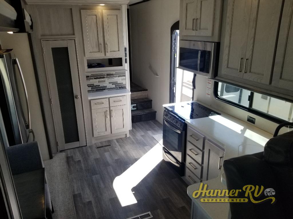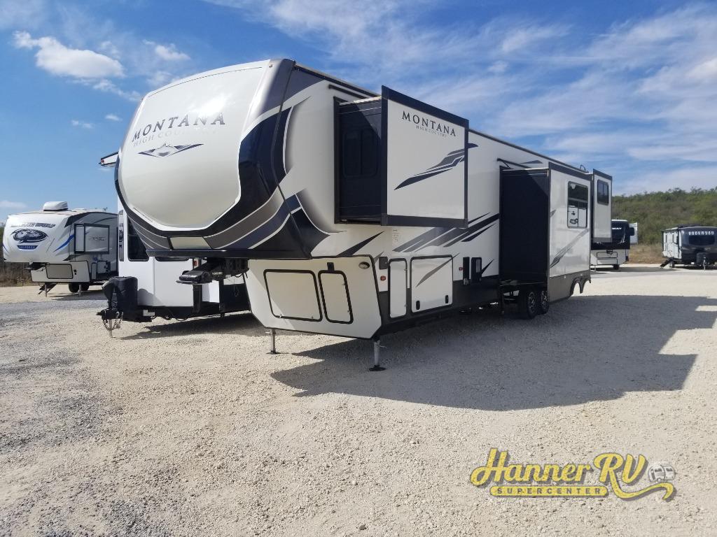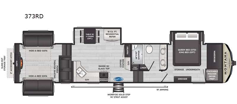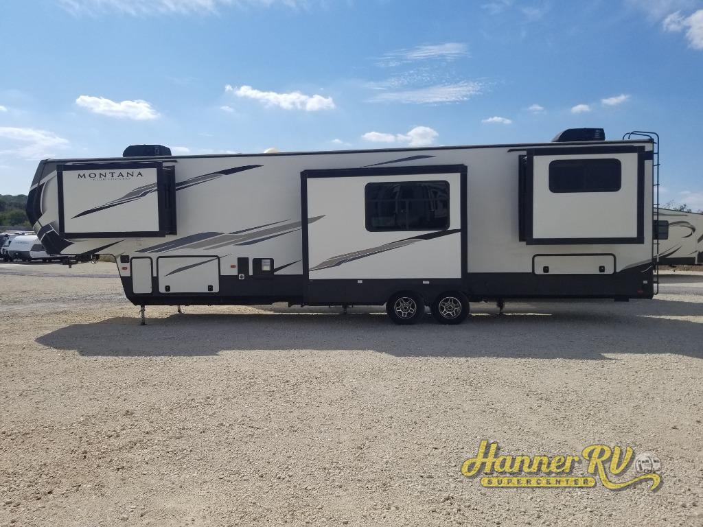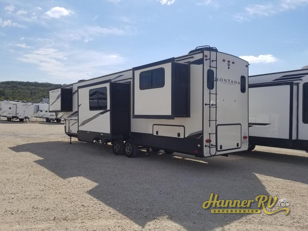 With each Montana High Country fifth wheel by Keystone you will enjoy family-friendly features, lightweight floorplans, and drop-frame construction for maximum storage. Each model is built for four season living with the heated and enclosed underbelly and the astrofoil insulated slide floors and underbelly. The Mystic Ash cabinetry, hardwood decorative slideout fascia, and accent crown molding create a luxurious fifth wheel everyone can get used to. These models include a Whisper Quiet A/C system to cool your space quietly and evenly, plus there is a 35,000 BTU furnace that will allow you to extend your camping season. The Montana High Country fifth wheels are equipped with a Road armor shock absorbing hitch pin for easy towing, and set-up will be a breeze with the Hitch Vision with LED lighting. There are many more features to love about these fifth wheels, like the MaxTurn front cap, the Solera series power awning(s), the residential appliances, and the list goes on!