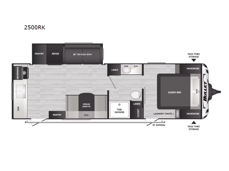 Dream Dinette, Rear Kitchen, Tri-Fold Sofa, Two Pantries & MORE!Keystone Bullet Crossfire travel trailer 2500RK highlights: