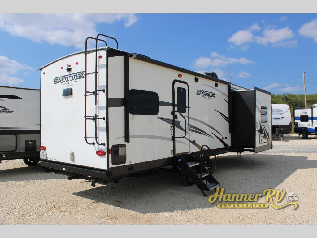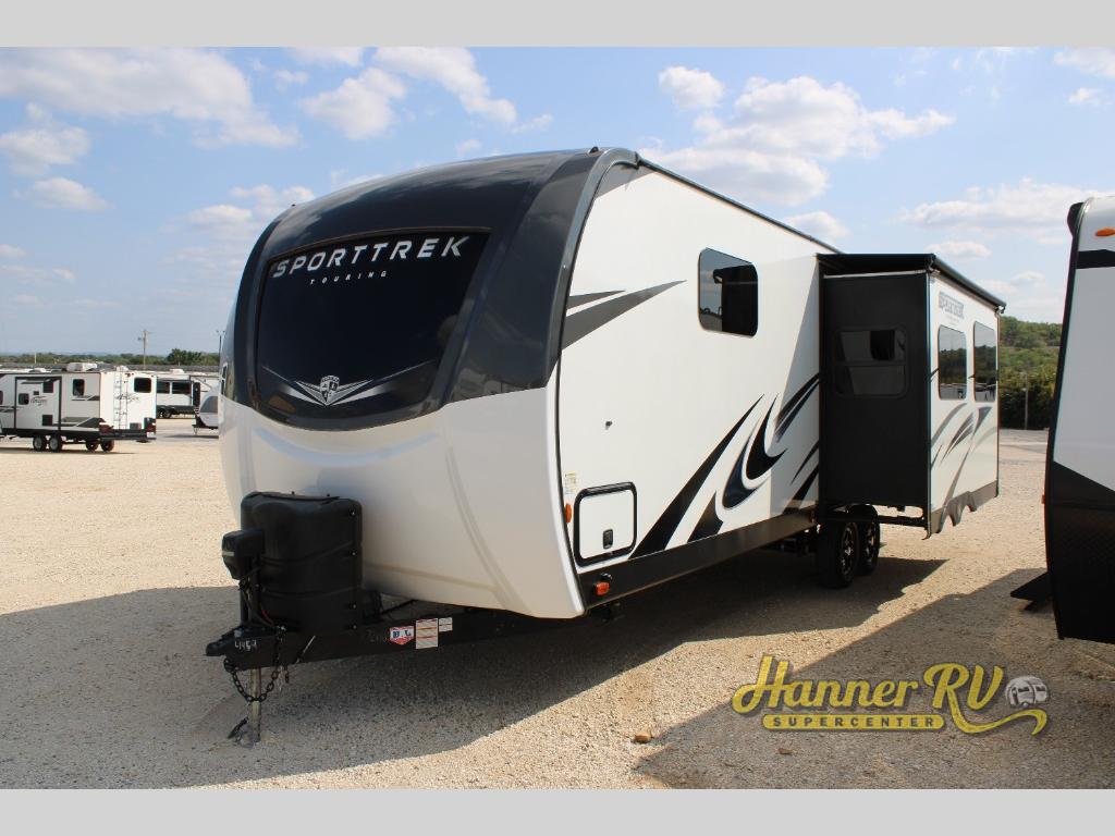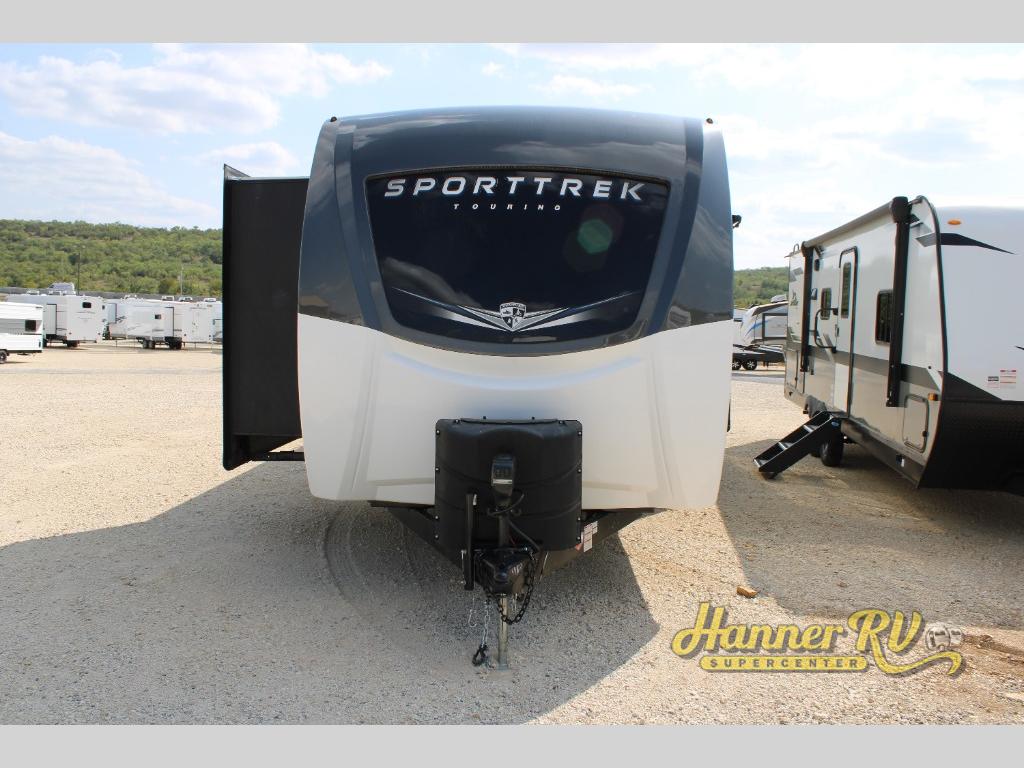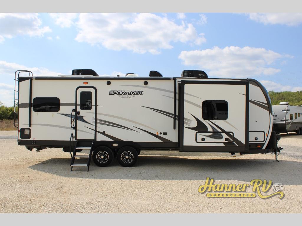 An elegant design and new features come with every one of these Venture RV SportTrek Touring Edition travel trailers! The NXG Huck bolt frame holds these units together and a walkable roof covers them. Heads will turn down the highway and at the campsite with an upgraded graphics package and a painted fiberglass front cap with integrated LED light. The exterior pass-through storage area has slam latch baggage doors with magnetic catches so you don't have to worry about them closing on you and a motion activated light to see your items clearly even at night. Luxury abounds throughout these units, especially with the mandatory Interior Luxury package which comes with washer and dryer prep (varies by model), two 30" frameless fireplaces, and Beauflor wood plank flooring that is easy to clean. Come find your favorite model today!