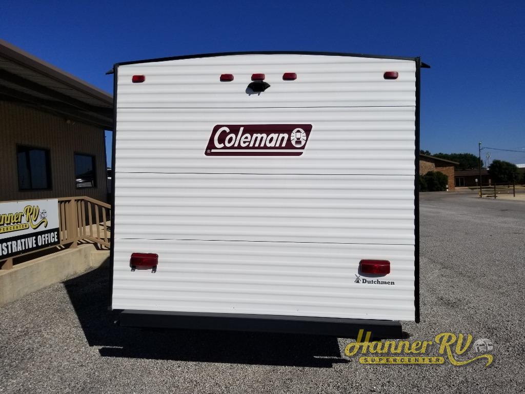 With this Coleman trailer, you will experience Dutchmen quality throughout, plus enjoy a lightweight travel trailer while towing to the campground or RV park. Some of the inside features include glass cabinet doors, a high rise faucet, and trash can storage. The 28" entrance door offers an entry handle to easily make your way up the solid entry step, and other exterior features include radial tires, silver spoke rims, Easy Lube axles and storage. Take this Coleman home today!