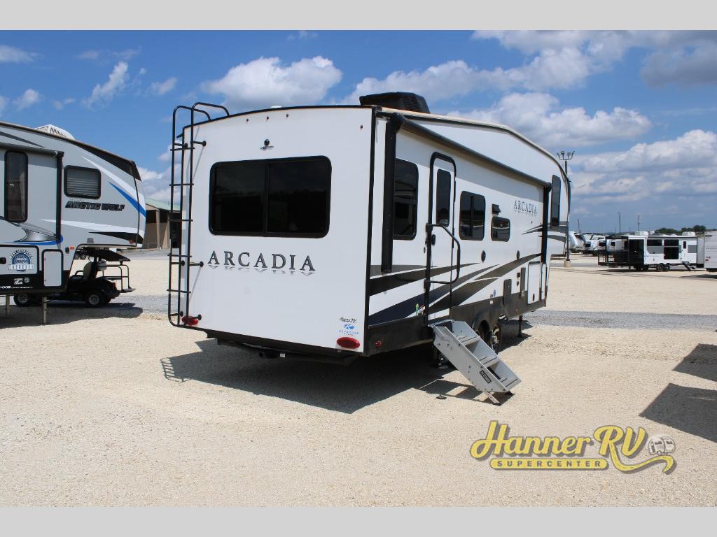 With any Arcadia Super Lite fifth wheel by Keystone, you will enjoy easy-to-tow lengths, unmatched storage, and oversized windows to let the outdoor views in. The structural I-beam frame will provide a strong foundation to your RV, and the Curt Performance Package means you can enjoy hassle-free towing. You will be able to camp year around thanks to the Peak Weather Package that includes a heated and enclosed underbelly, a 35K BTU furnace, and Keystone's exclusive HyperDeck floor that adds an additional layer of insulation to your floor. The interior will make you feel at home with residential hardware, seamless pressed countertops, residential Roman shades throughout, and ample storage space. Sometimes the best things come in smaller packages; choose a Arcadia Super Lite today!