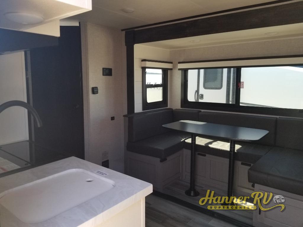 Double Size Bunks, Outside Kitchen, Front Murphy Bed, & U-Shaped Dinette!