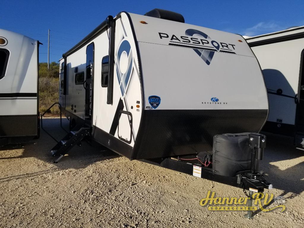 With any Keystone Passport SL you will enjoy lightweight towing and lots of interior comforts! The power tongue jack lets you hitch up at the drop of a hat, and the Dexter torsion axle rubber ride suspension will make towing easier than ever. You will appreciate having power stabilizer jacks for quick setup and an exterior convenience center to monitor tank levels. These trailers are constructed with a seamless, laminated and gel-coated filon exterior, 80% tinted safety glass windows, and a one-piece polypropylene underbelly. The interior will have you feeling right at home with residential durable Beauflor vinyl flooring, deluxe night shades, LED lighting throughout, and seamless kitchen countertops to name a few comforts.