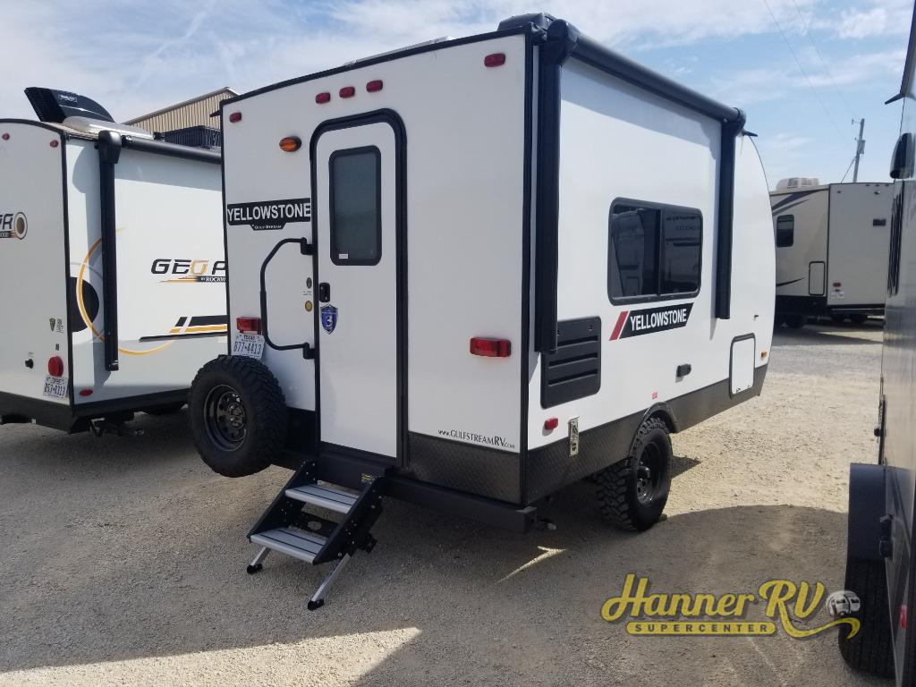 The 2025 Gulf Stream Yellowstone Trail Edition 150RD is the ultimate compact, rugged adventurer. Designed for off-grid exploration, this lightweight travel trailer has a dry weight of just 2,910 lbs, making it easy to tow. It comes trail-ready with a Lift Kit, All-Terrain Radial Tires, and a 100W roof-mount solar panel. Inside, you'll find everything you need, including an RV Queen Bed, and a rear corner bathroom with a shower.