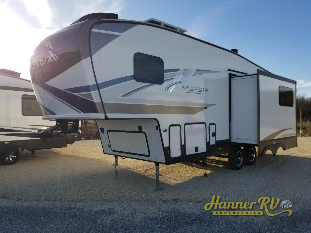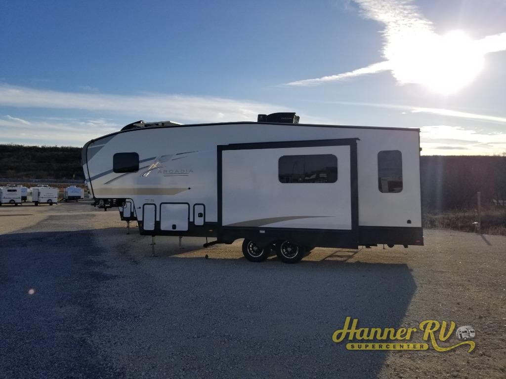 With any Arcadia Select fifth wheel by Keystone you will enjoy easy towability and at-home comforts at an affordable price! The laminated sidewalls with five sided aluminum superstructure will provide a strong foundation so you can enjoy your RV for years to come, plus a one-piece, heated and enclosed polypropylene underbelly means you can camp year around! And an upgraded Roto-Flex hitch pin with will make it easy to tow. Head inside to find tall slides for added space, seamless, pressed countertops, convenient underbed storage, and a large shower with a retractable door and skylight. These fifth wheels also include a Blade Pure A/C system, Girard on-demand tankless water heater, two 30 lb. LP tanks, and more utilities to make your camping experience run smoothly.