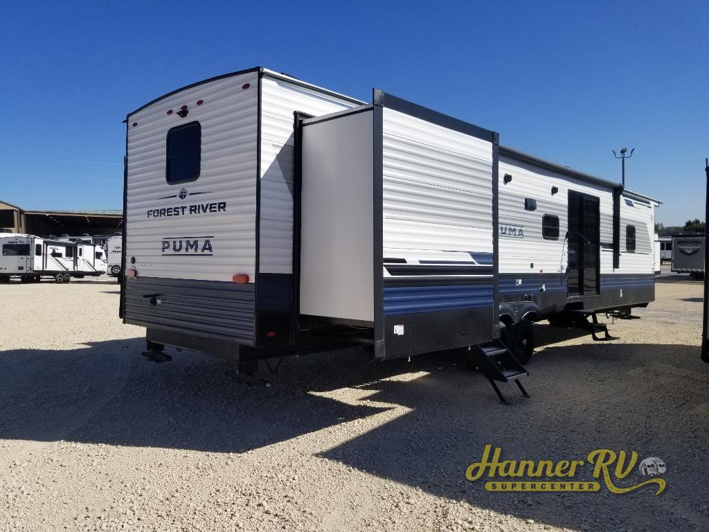 Each Puma Destination trailer by Palomino is designed to give you unforgettable getaways to the destination of your choice! The Value Shopper Package features Congoleum linoleum, LED lighting, an AM/FM/Bluetooth stereo, and an upgraded kitchen faucet to name a few comforts. Two exterior speakers are included with the required Marquis Edition, along with solid surface countertops, night roller shades, an outside shower, and four stabilizer jacks to help keep your unit secure. You will also appreciate the roof and side mount solar prep for off-grid capabilities, as well as WiFi prep if you need the option to work while you're away from home!